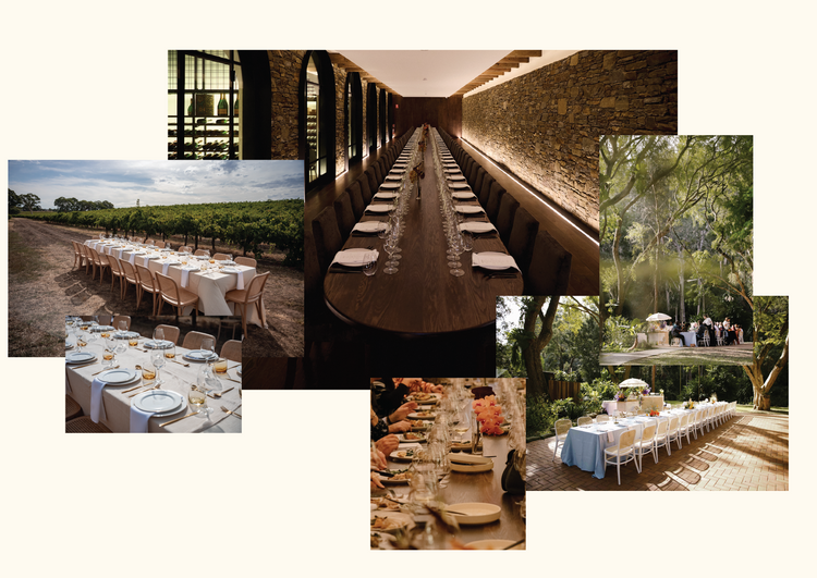 Fine dining among grape-laden vines, glittering city laneways, soaring art spaces, intimate underground wine vaults and more, we’ve curated the most memorable one-of-a-kind long-table dining experiences.