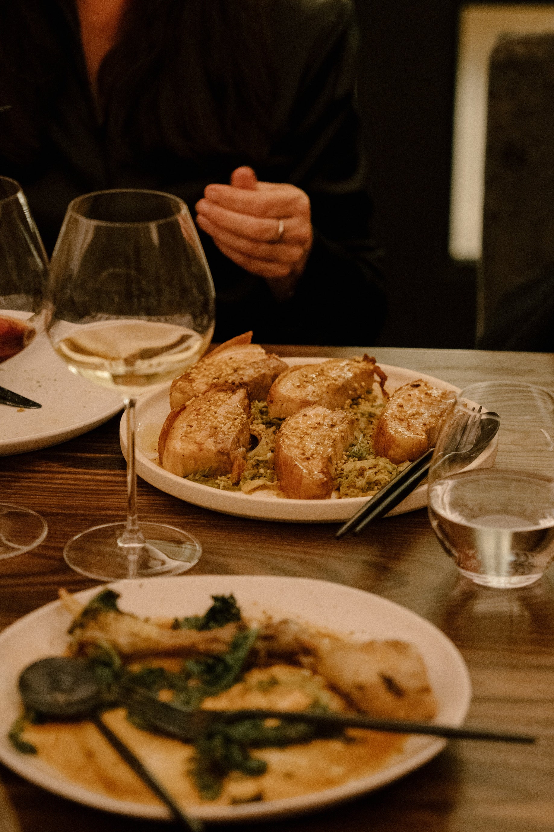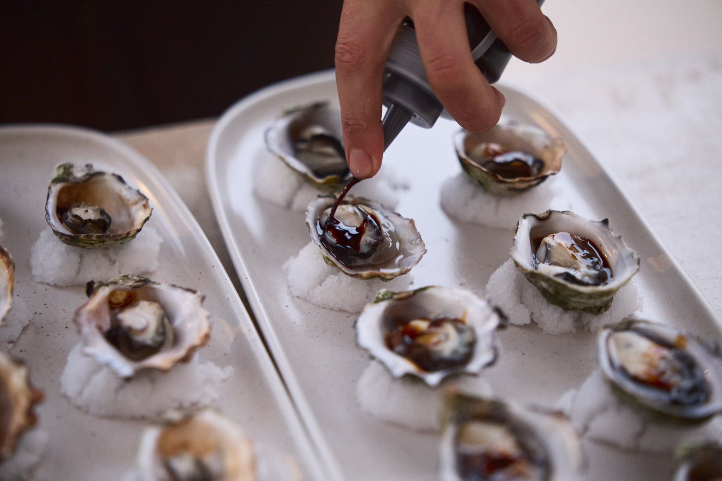 - BBQ oyster, jerk chicken wing garum, brown butter