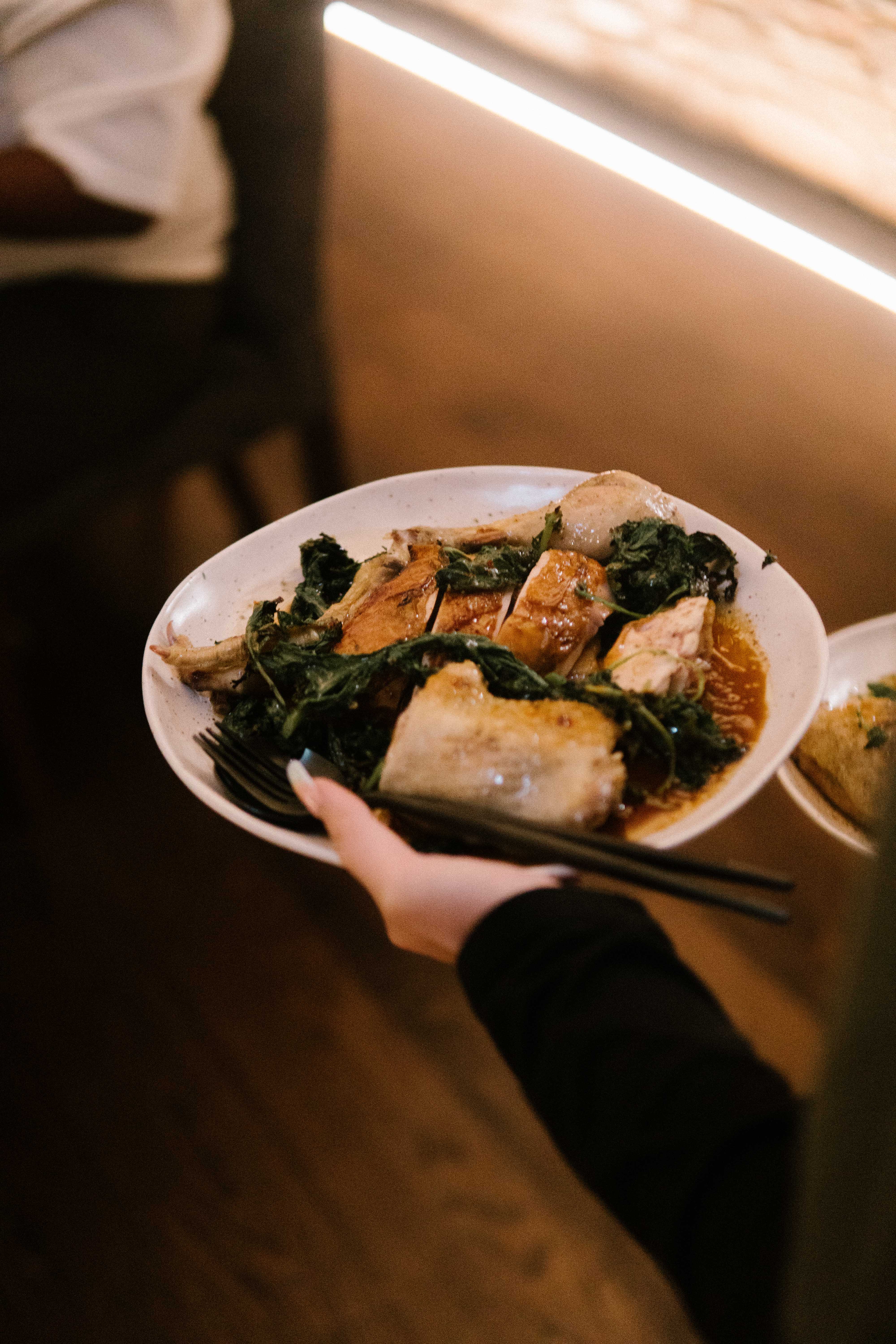 - Smoked Abelsway Farm chicken, cimi de rapa, confit garlic