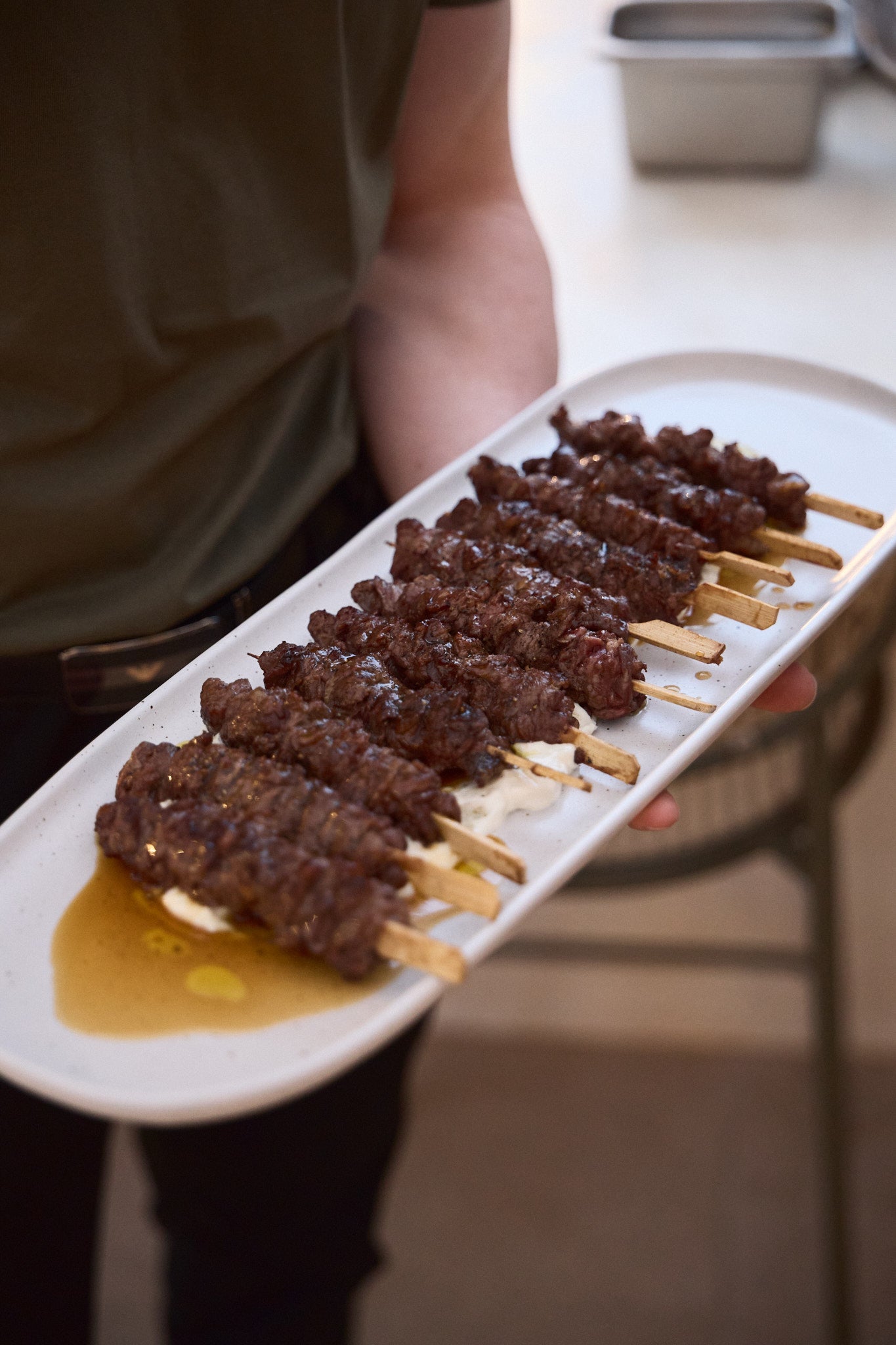 - Mayura Station intercostal skewer, lime cream, black pepper